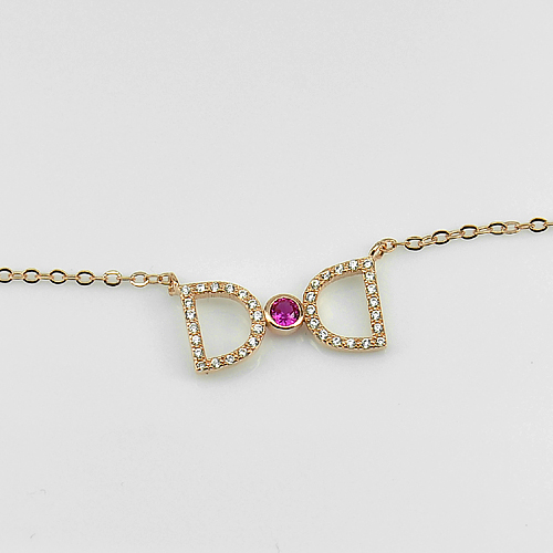 925 Sterling Silver Rose Gold Jewelry Necklace 16 Inch. Letter Double D Design
