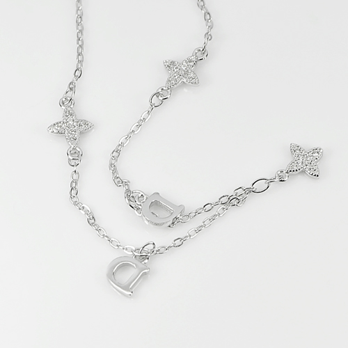 Letter D Design White CZ Real 925 Sterling Silver Jewelry Necklace 16 Inch.