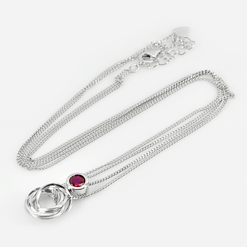 Round Red CZ Design 925 Sterling Silver Necelace Jewelry Length 15 to 16 Inch
