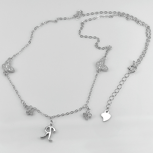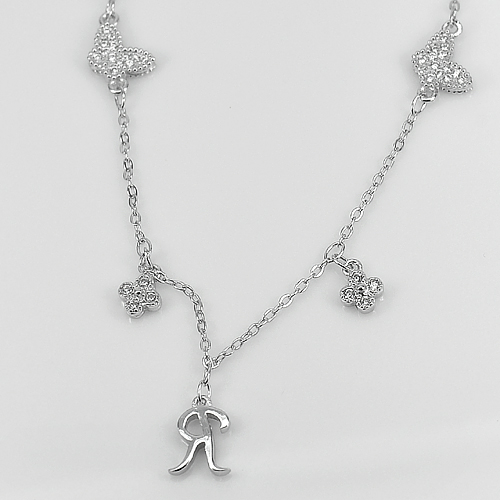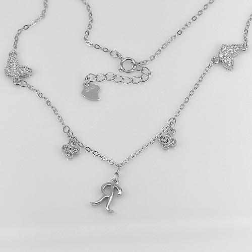 Lovely Letter R Butterfly and Flower 925 Sterling Silver Necklace Length 18 Inch