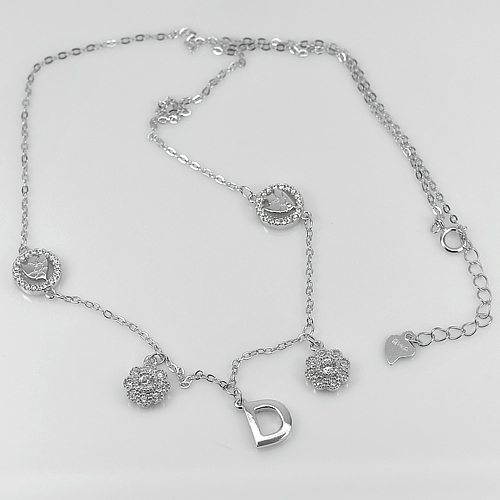 Letter D with White CZ Round Real 925 Sterling Silver Necklace Length 18 Inch.