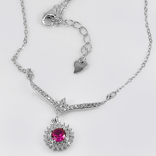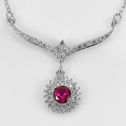 Round Red CZ 925 Sterling Silver Fine Jewelry Necklace Length 17 Inch. 3.10 G.