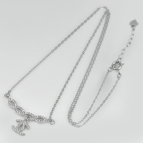 Nice Letter C Round White CZ Design 925 Sterling Silver Necklace Length 16 Inch