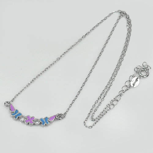 925 Sterling Silver Necklace Jewelry with Butterfly Enamel and CZ Length 14 Inch