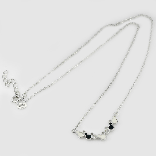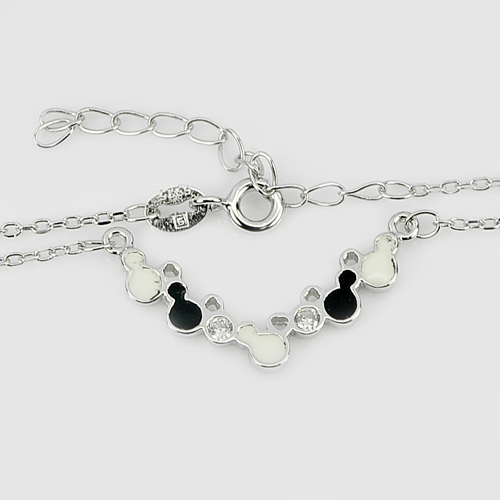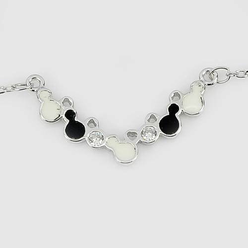 Fancy Black and White Enamel Design 925 Sterling Silver Necklace Length 15 Inch.