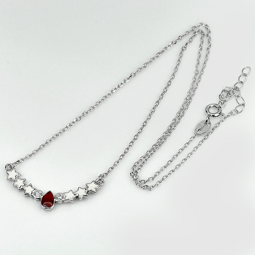 Beautifully Star Enamel Design Real 925 Sterling Silver Necklace Length 14 Inch.