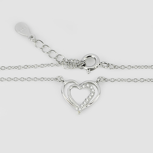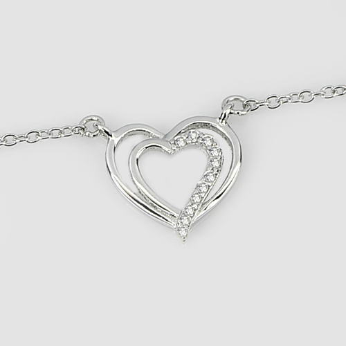 Lovely Heart Design Round White CZ Real 925 Sterling Silver Necklace 16 Inch.