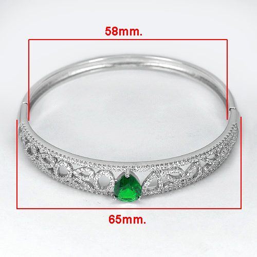 19.03 G. Pear Shape Green CZ Real 925 Sterling Silver Bangle Diameter 58 mm.