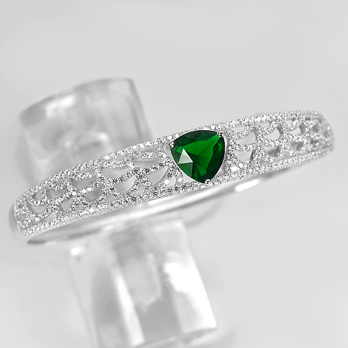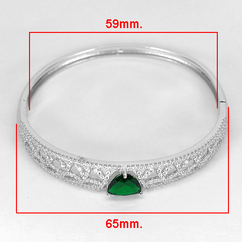 18.97 G. Trilliant Shape Green CZ 925 Sterling Silver Bangle Diameter 59 mm.