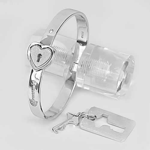 Nice Key Lock Design 925 Sterling Silver Jewelry Bangle Diameter 56 mm.