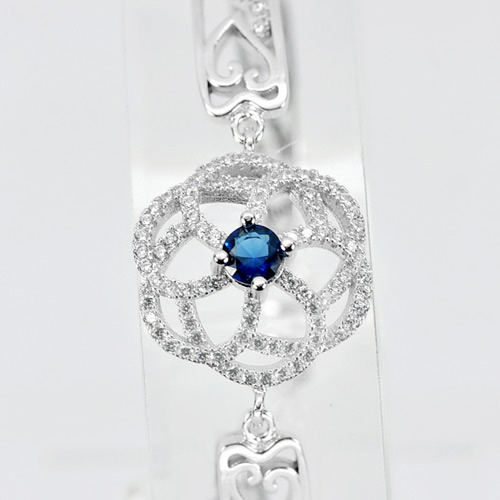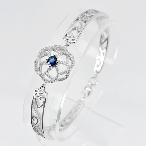 12.87 G. Real 925 Sterling Silver Fashion Jewelry Bangle Round Blue CZ