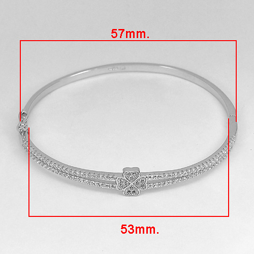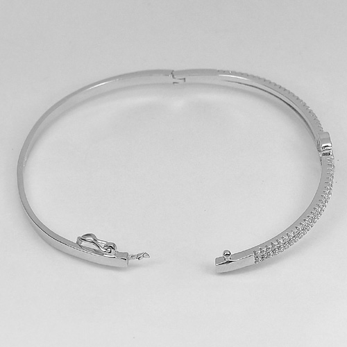 7.08 G. Beautiful White CZ Round Real 925 Sterling Silver Jewelry Bangle