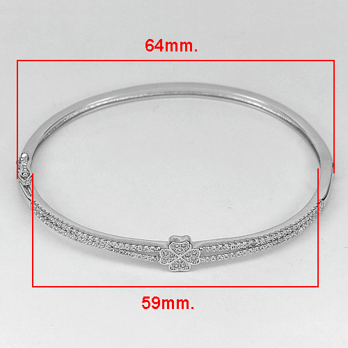 Heart Design Real 925 Sterling Silver Jewelry Bangle Diameter 59 mm.