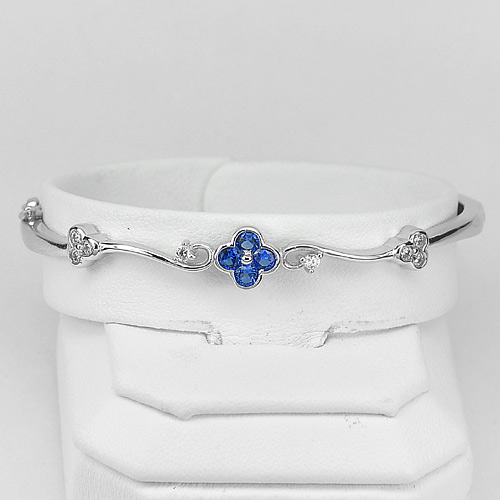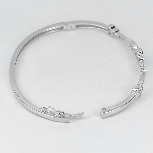 Lovely Design 925 Sterling Silver Jewelry Flower Bangle Diameter 54 mm.