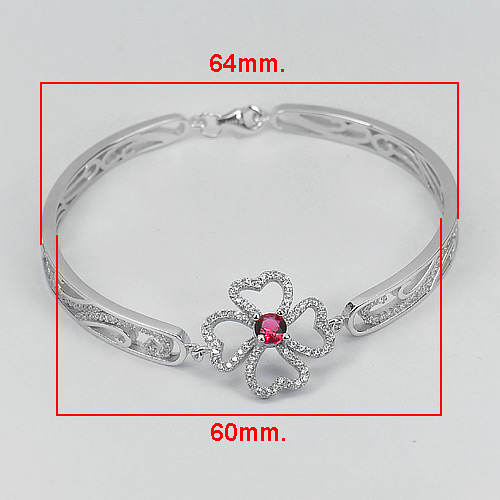 14.63 G. Diameter 60 Mm. Real 925 Sterling Silver Bangle Clear CZ Flower Design