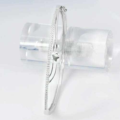 Good Round White CZ Star Design Real Sterling 925 Silver Bangle Jewelry