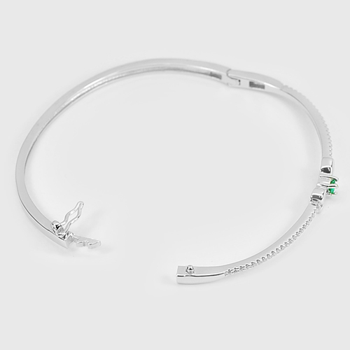 Round Green CZ Real 925 Sterling Silver Jewelry Bangle Diameter 59 Mm. 8.11 G.