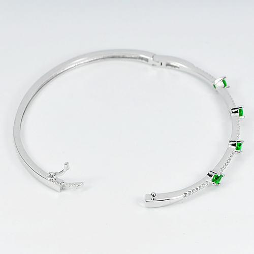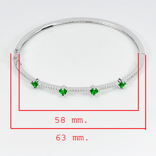 Round Green CZ Real 925 Sterling Silver Jewelry Bangle Diameter 58 mm.