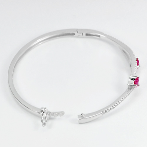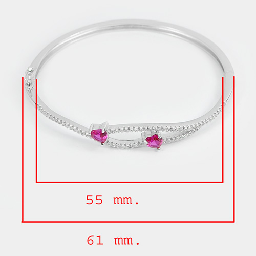 Real 925 Sterling Silver Jewelry Bangle Diameter 55 mm. Pair Heart Design