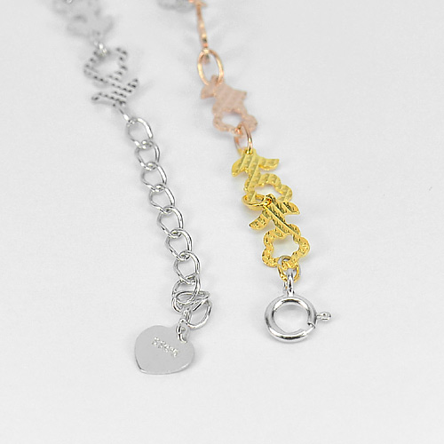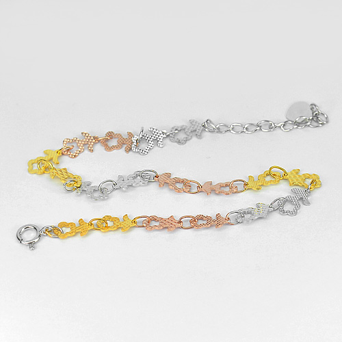 Three Color Flower Real 925 Silver Sterling Jewelry Bracelet Length 7 Inch.