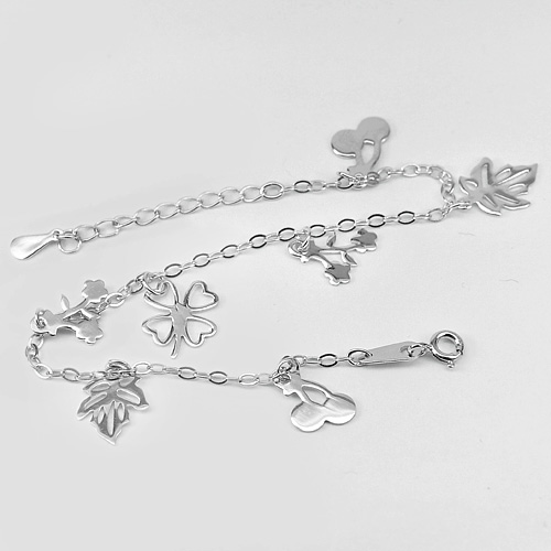 Cherry Leaf Flower Design 925 Silver Sterling Jewelry Bracelet 7 Inch.