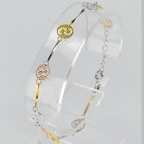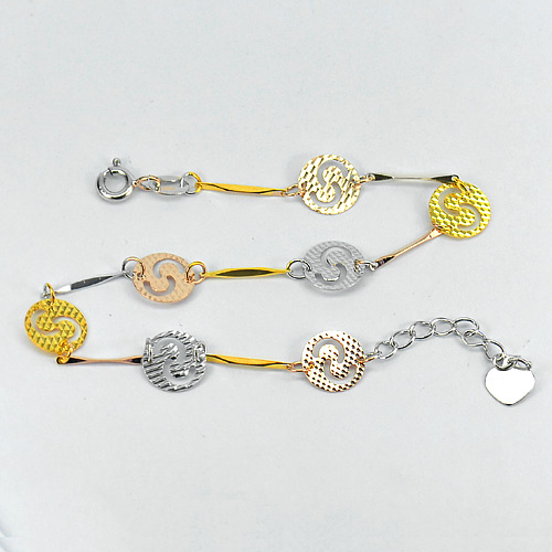 925 Sterling Silver Three Color Bracelet Jewelry Beautiful Design Length 7 Inch.