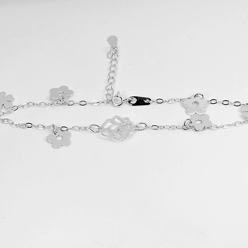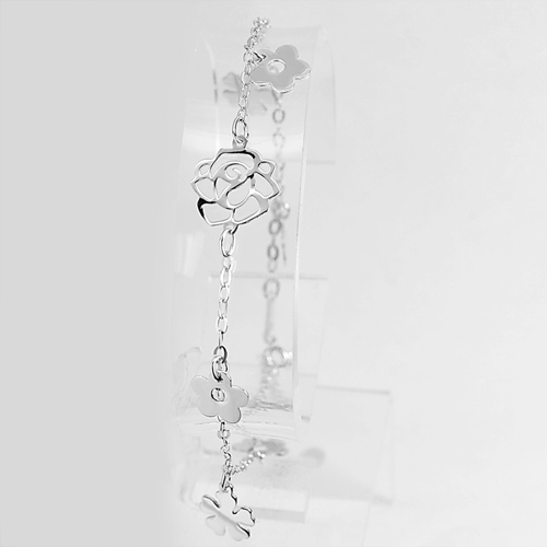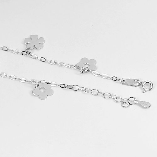 3.43 G. Flower Design 925 Silver Sterling Jewelry Cable Chain Bracelet 8 Inch.