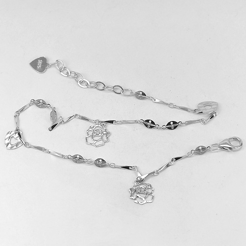 Heart Design 925 Sterling Silver Bracelet Length 9 Inch.