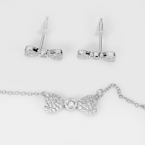 925 Sterling Silver Earrings and Necklace Jewelry Set with White CZ 17 Inch.