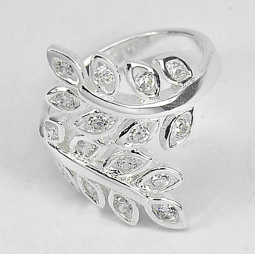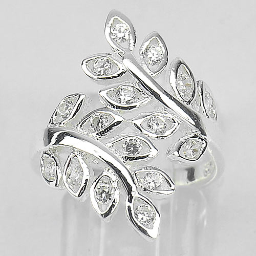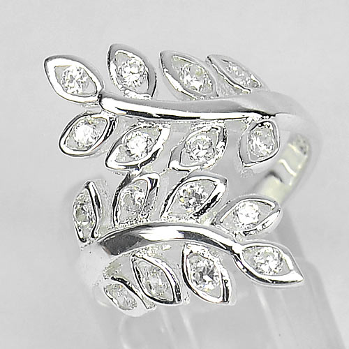 925 Sterling Silver Ring Size 7 Olive Leaf Design with White CZ 4.73 G.