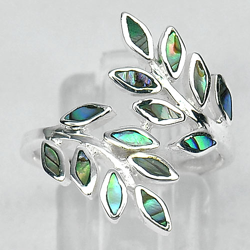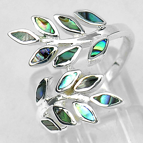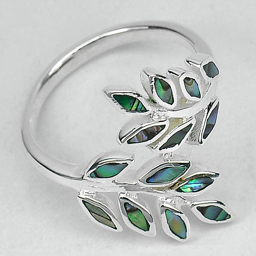 Multi Color Shell 925 Sterling Silver Olive Leaf Design Jewelry Ring Size 7