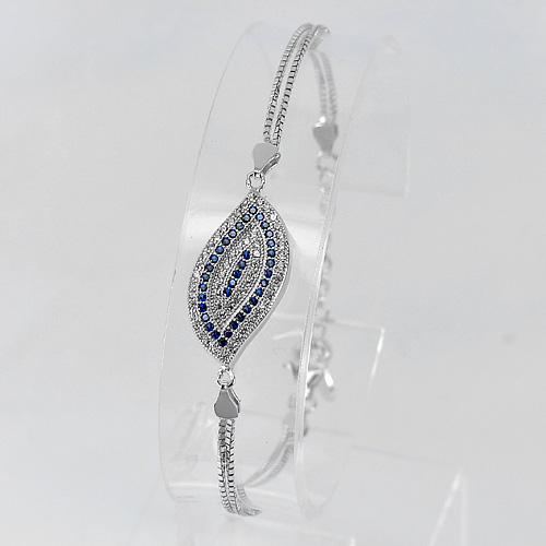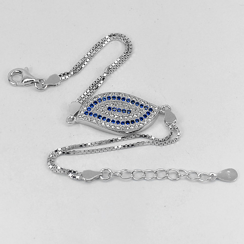 About 4.76 Grams. Round Blue CZ Size 1 x 1 mm. Many. Round White CZ Size 1 x 1 mm. Many. And Adjustable Bracelet.