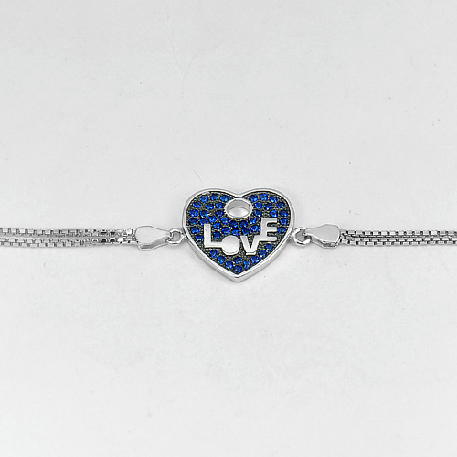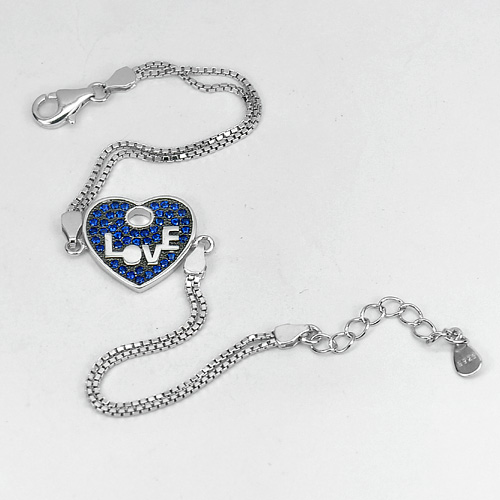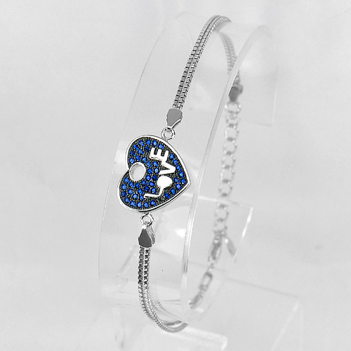 5.02 G. Love in Heart Blue CZ 925 Silver Sterling Adjustable Bracelet 7 Inch.