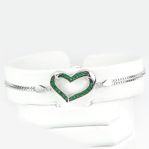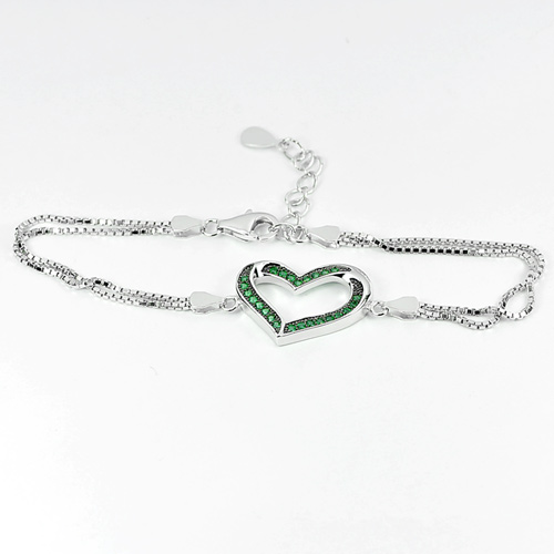 Round Green CZ Heart Design Real 925 Sterling Silver Jewelry Bracelet 6.5 Inch.