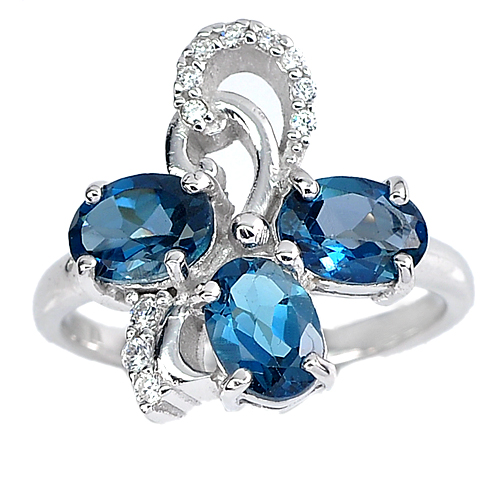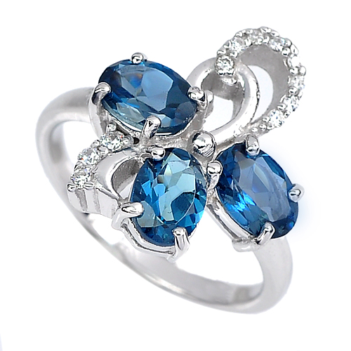 Natural London Blue Topaz Oval Size 7 x 5 Mm. 3 Pcs. And White CZ Round Size 1 - 1.5 Mm.
