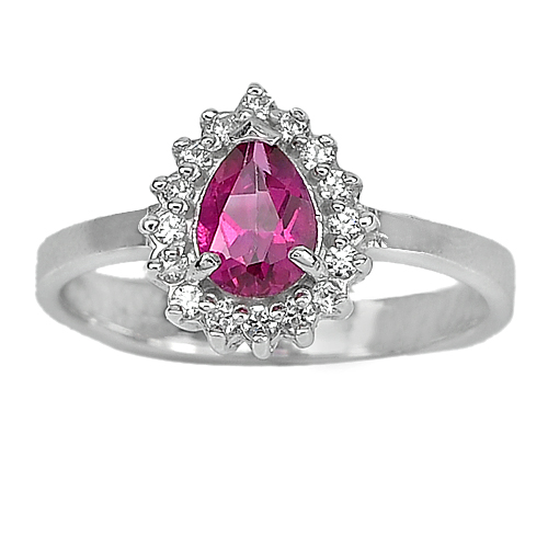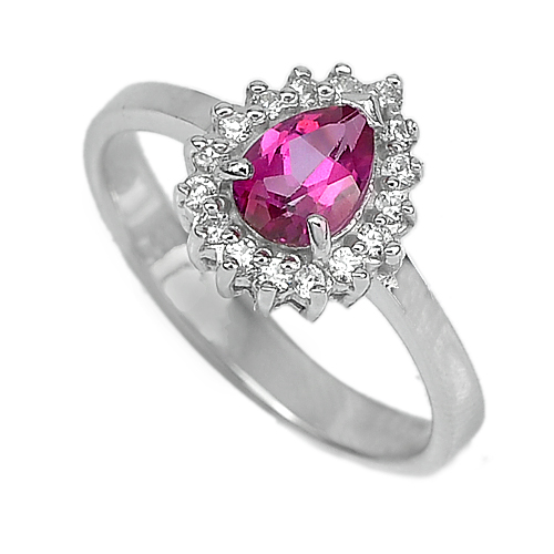 3.34 G. Pear Shape Natural Gem Pink Topaz Real 925 Sterling Silver Ring Size 8