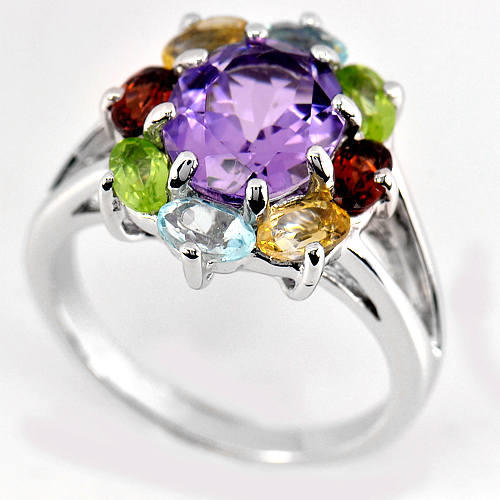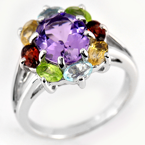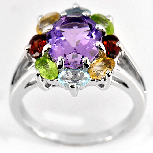 6.14 G. Natural Amethyst Citrine Garnet Real 925 Sterling Silver Ring Size 9