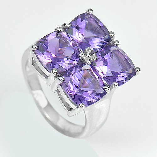 Natural Purple Amethyst Real 925 Sterling Silver White Gold Plated Ring Size 7