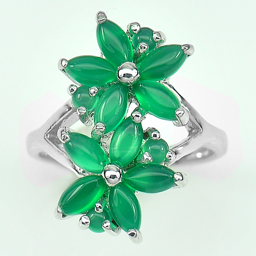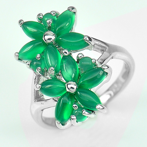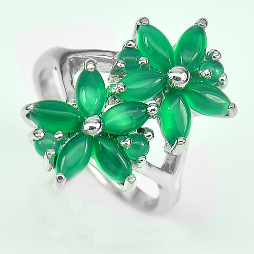Natural Green Aventurine Real 925 Sterling Silver White Gold Plated Ring Size 7