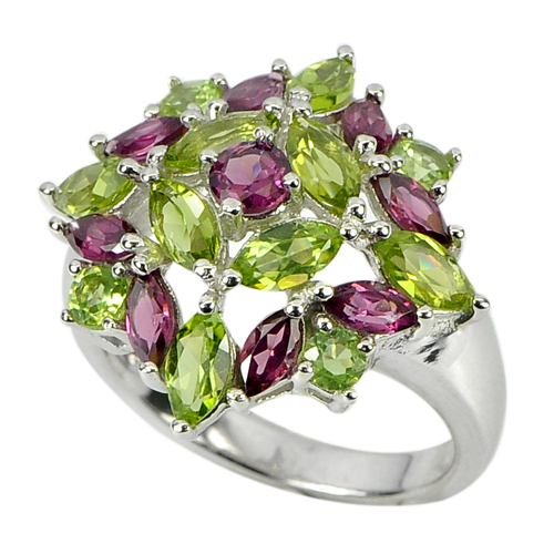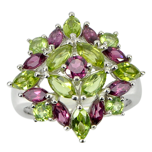 Natural Rhodolite Garnet Peridot Real 925 Sterling Silver Beautiful Ring Size 8