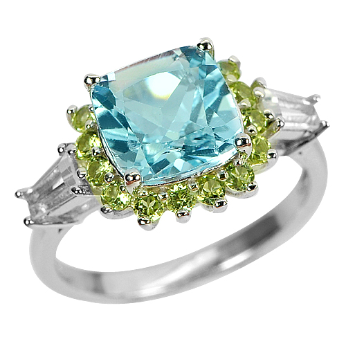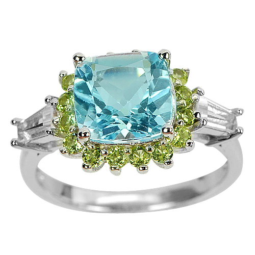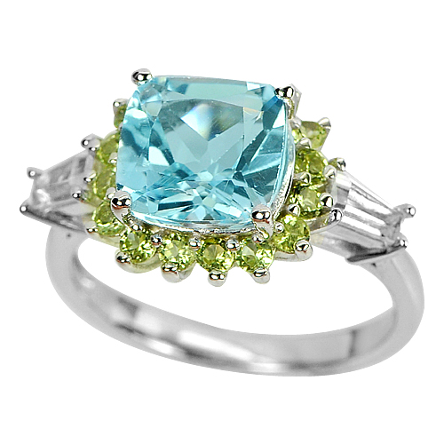 4.09 G. Natural Topaz Peridot Real 925 Sterling Silver Fine Jewelry Ring Size 8