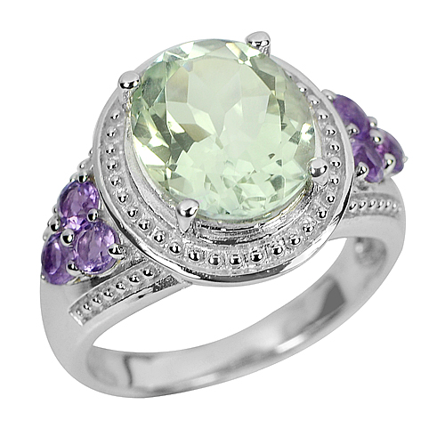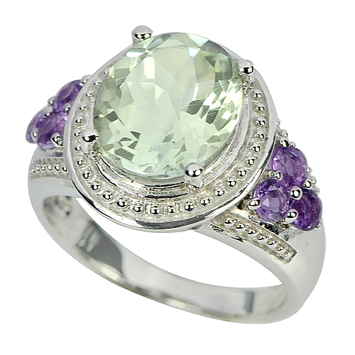 Natural Green Amethyst Oval Size 12 x 10 Mm. 1 Pc. And Natural Purple Amethyst Round Size 3 x 3 Mm. 6 Pcs.