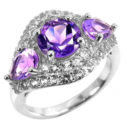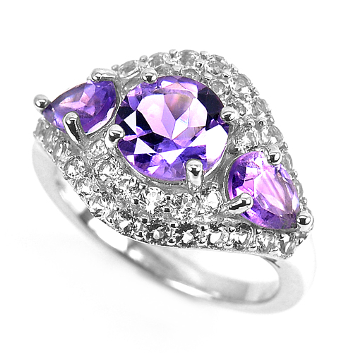 5.82 G. Natural Amethyst Real 925 Sterling Silver White Gold Plated Ring Size 7