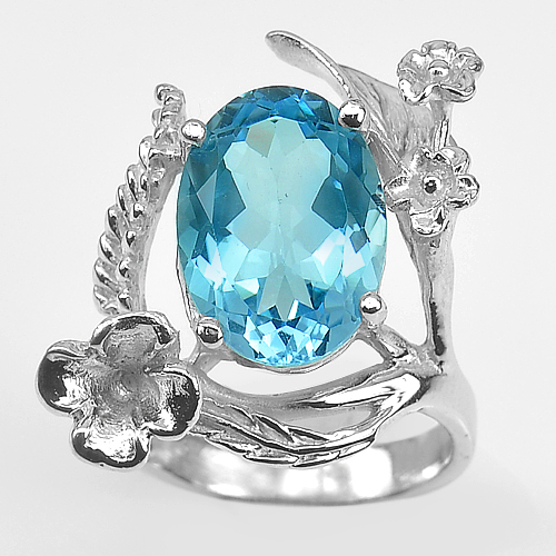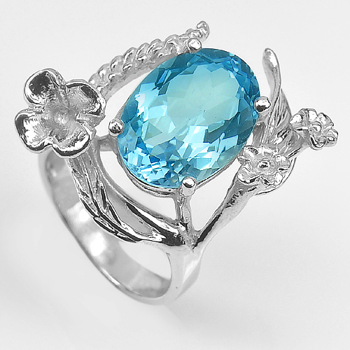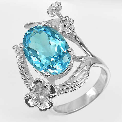 10.65 G. Beautiful Natural Gem Blue Topaz Real 925 Sterling Silver Ring Size 8
