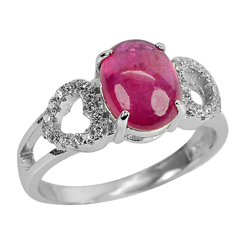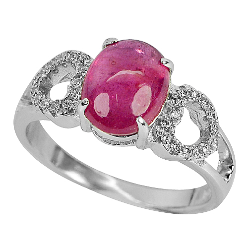3.25 G. Natural Gem Pink Red Ruby with CZ Real 925 Sterling Silver Ring Size 7