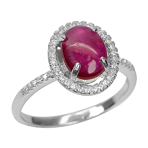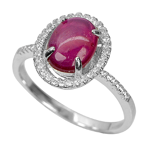 Oval Cabochon Size 10 x 8 Mm. Natural Purplish Red Ruby And White Cz Round Size 1 Mm. Many
