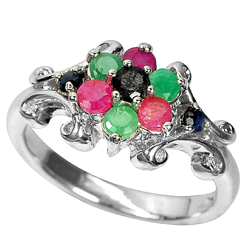 925 Sterling Silver Ring Jewelry with Natural Gem Emerald Ruby Sapphire Size 8