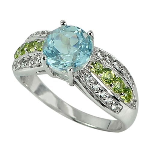 4.36 G. Round Natural Topaz Peridot Real 925 Sterling Silver Jewelry Ring Size 8