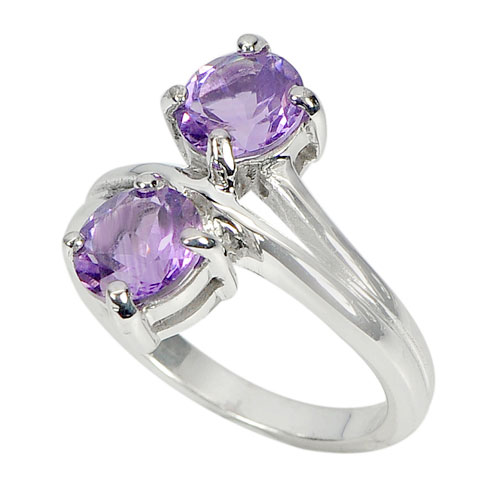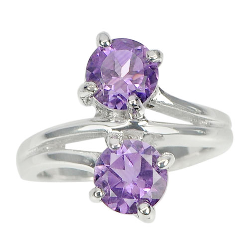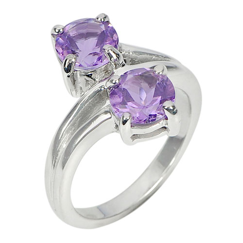 5.49 G. Round Purple Natural Gems Amethyst Real 925 Sterling Silver Ring Size 7