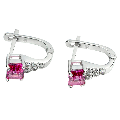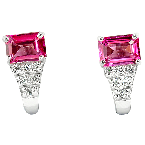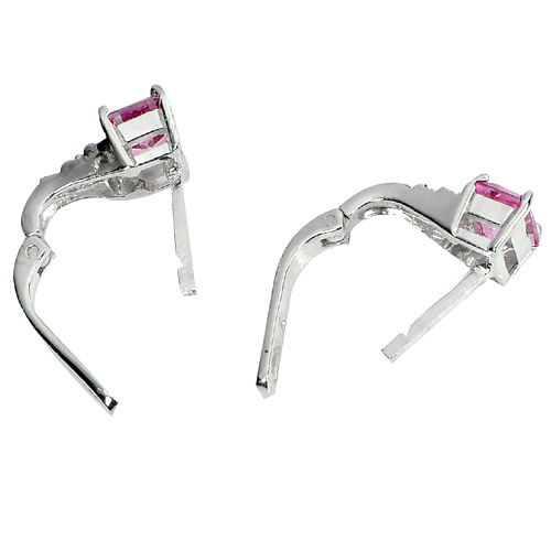 925 Sterling Silver Earrings Jewelry with Natural Gemstone Pink Topaz and CZ